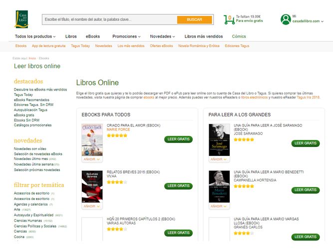 Es una web que recopila y difunde obras que están ya libres de derechos de autor. Es de fácil navegación y te enseña la bibliografía del autor e información de las obras.